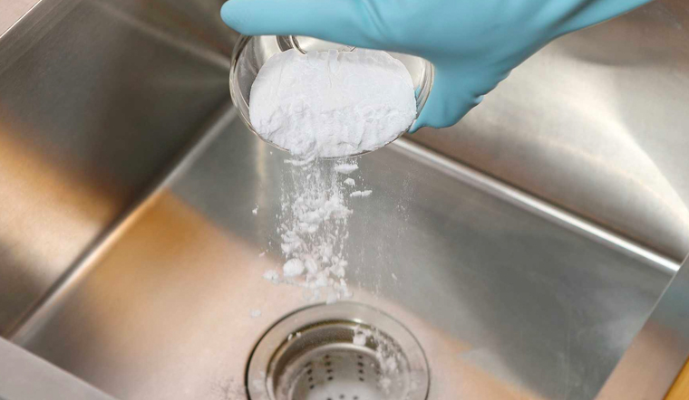 - Đổ baking soda vào lỗ thoát nước.